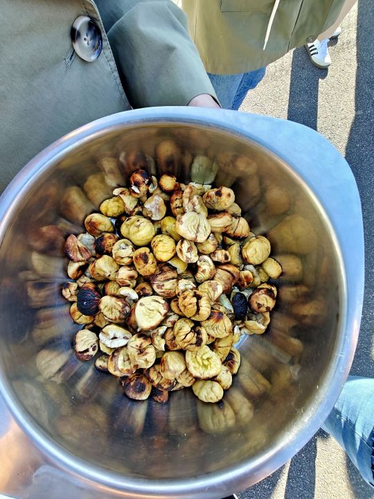 L’après-midi, parents et grands-parents ont rejoint l’école pour griller et éplucher les châtaignes, préparant ainsi un goûter convivial pour tous.