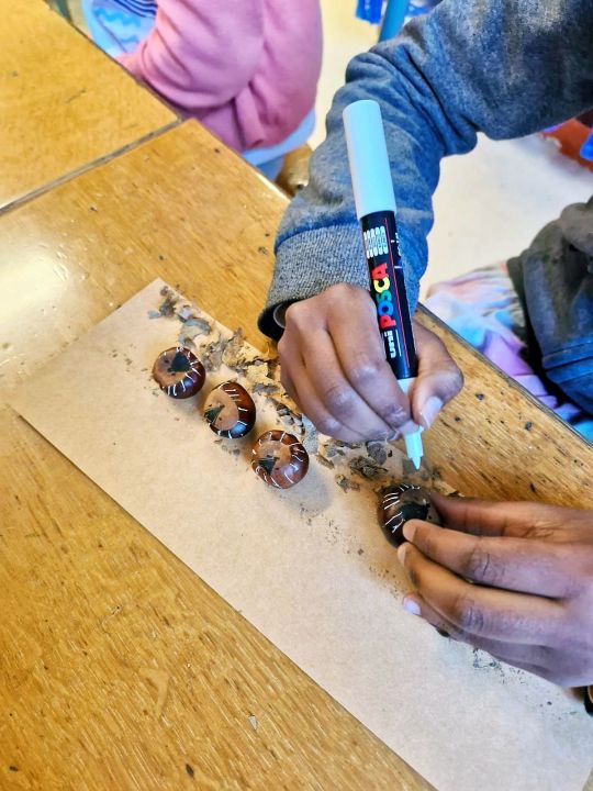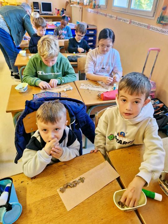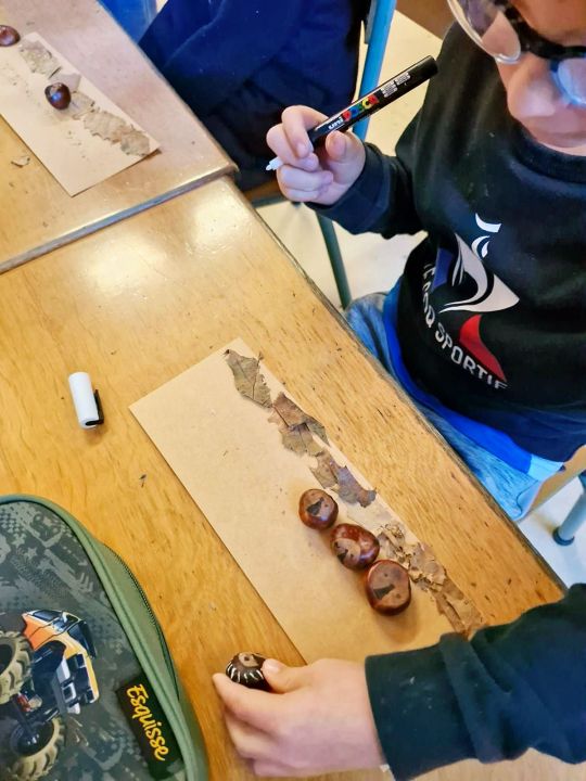 Depuis plusieurs semaines, les élèves ramassaient les châtaignes tombées des arbres de la cour, dans la joie et la bonne humeur. Le jour de la fête, les enfants ont participé à des ateliers d’arts plastiques, où les plus grands accompagnaient les plus petits.